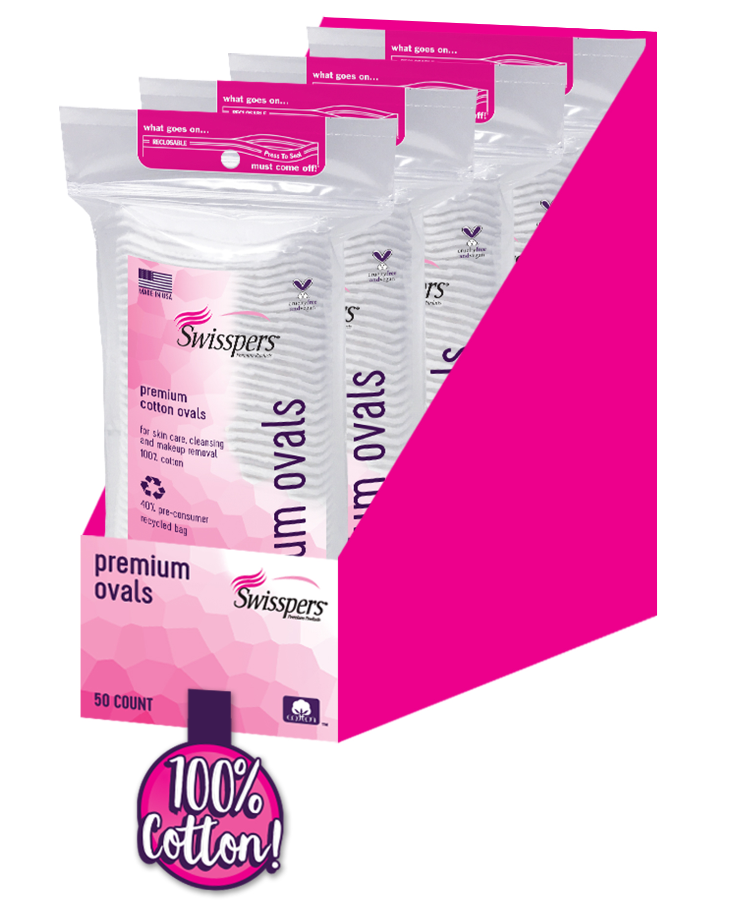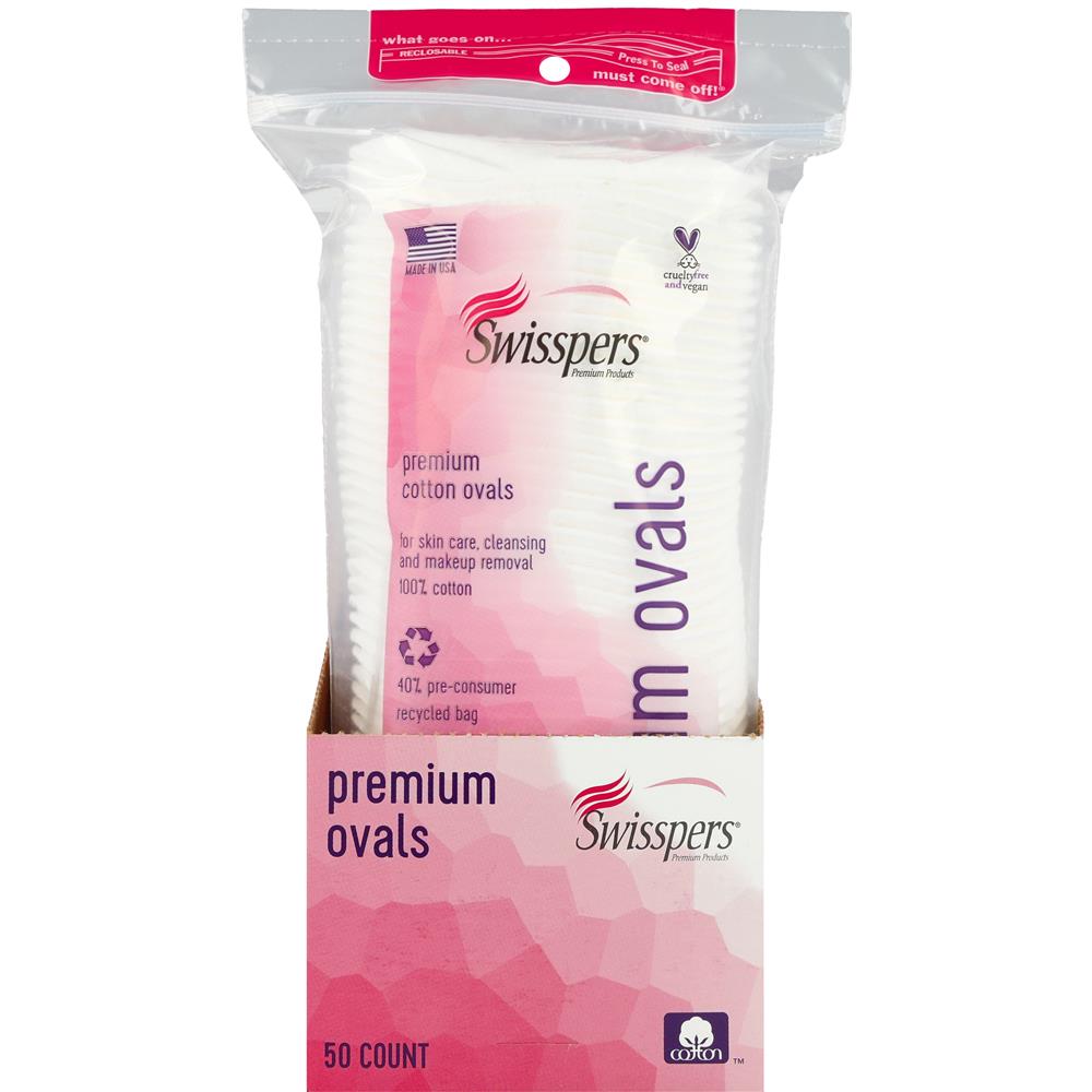 Swisspers® Premium Cotton Ovals Large 50 Count, Shelf-Ready-Tray
