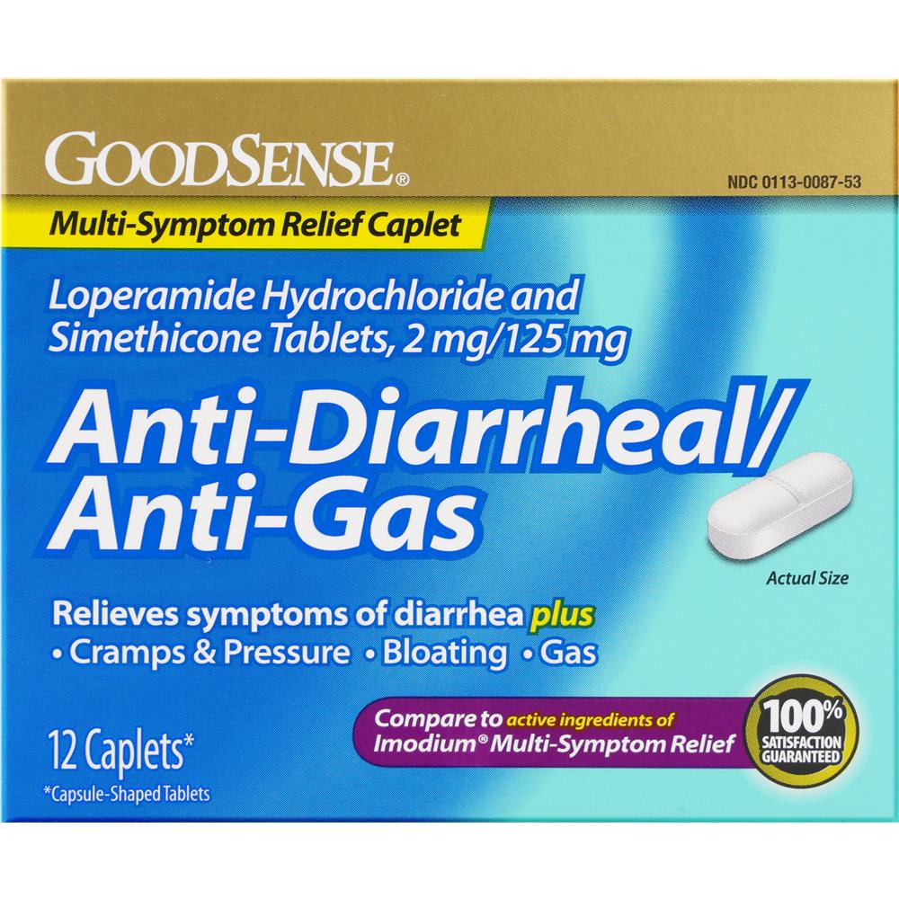 GoodSense® Anti-Diarrheal/Anti-Gas Loperamide Simethicone Caplets, 12 Count
