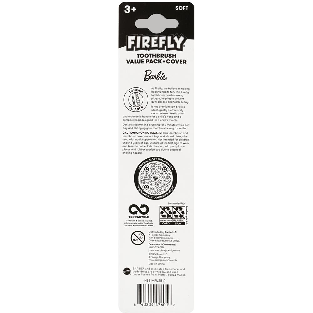 Add a touch of fun to your child’s daily routine with the Firefly Barbie Toothbrush Value Pack + Cover, designed especially for young Barbie fans. This kid’s toothbrush pack is thoughtfully crafted to meet the oral care needs of children ages 3 years and above. It includes soft-bristle toothbrushes that provide a gentle yet effective cleaning between teeth and along the gum line. With premium soft bristles, the Firefly Barbie toothbrush value pack helps prevent gum disease and tooth decay, making it essential for developing healthy habits from an early age.
